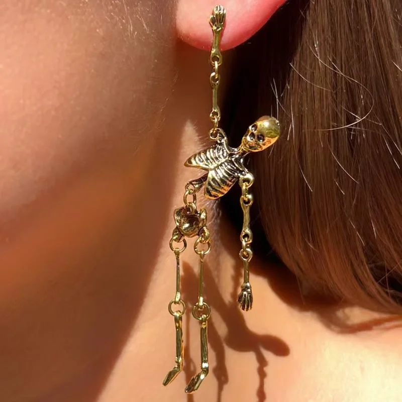 Le forfait comprend : 1 paire * Boucles d'oreilles longues pendantes en forme de squelette articulé