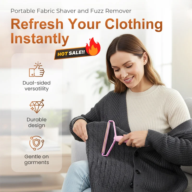 DESIGN A DOPPIO LATO: un lato è dotato di una lama in rame puro per rimuovere rapidamente i pelucchi, mentre l'altro lato è dotato di una spazzola morbida per lisciare i tessuti, offrendoti due strumenti in uno per una cura completa dei capi.