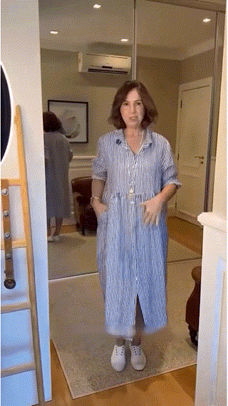 Eleganza senza tempo: abito chemisier con collo a revers a righe